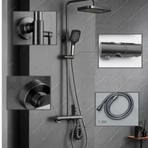 - Cap de duș tip ploaie: Oferă o experiență de duș uniformă și revigorantă, imitând efectul calmant al unei ploi naturale.
