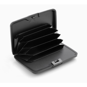 Suportul pentru carduri are spatiu pentru 5 carduri si este realizat din aluminiu si un aliaj metalic protector, impotriva furtului de date. Bateria externa cu care este dotat are o autonomie de 1800 mAh.